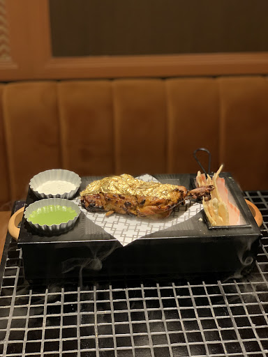 Pacchas Tola – Asli Sona it is…. tender tandoori chicken leg piece coated with edible gold served along with Naan. Taste is mildly spicy so good for all palates. Also loved the presentation of the entire dish with the leg piece getting center attraction rest all tucked inside pockets of the black box.