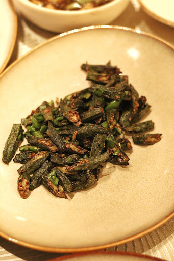 Okra chilli basil fry.. these were delicious. Crispy and spicy okras, So so good, couldn't stop eating them. It was a dry preparation. Can be eaten as an appetizer.