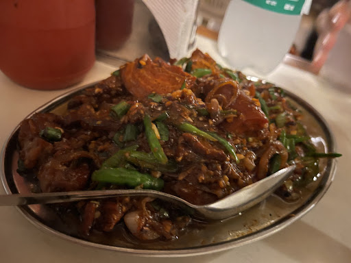Steak and chips: The steak was cooked to our liking and was very tender. The chips were crispy and had a good amount of salt. The portion size was large and could easily feed two people. Dry chilli pork: This dish was my favorite of the three. The pork was cooked until it was very tender and had a good amount of heat from the chilli peppers. The dish also had a nice sweetness to it from the soy sauce. Pork ribs: The pork ribs were also very good. They were tender and juicy and had a nice char on the outside. The sauce was sweet and savoury and complemented the pork well.