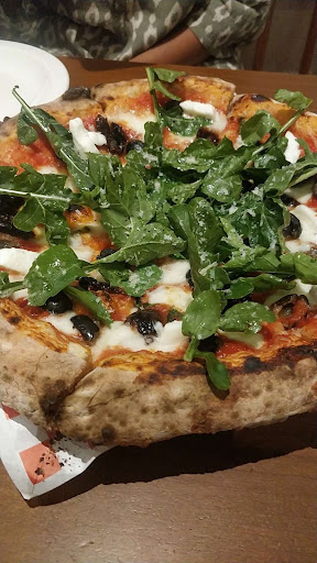 Once we got an indoor table, we ordered a sky rocket pizza and a pepper pizza. Sky rocket was amazing and the crust was normal woodfired which was not chewy at all and properly cooked. The rocket leaves and buffalo cheese were also on point. The pepper pizza was thin crust which was not as good but decent enough.