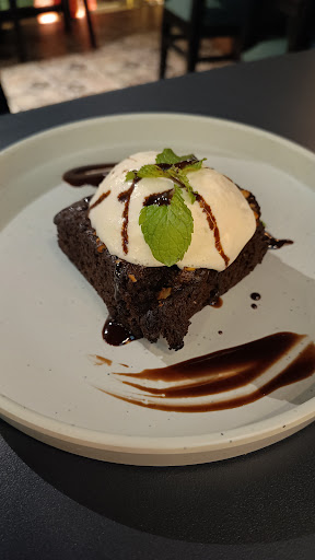 To finish, we indulged in the brownie with ice cream, which was rich and gooey, complemented perfectly by the cold, creamy vanilla ice cream.