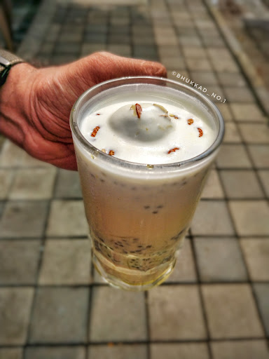 Rose 🌹 Sharbat: Rose syrup mixed with soda and ‘Sabja’, a super cool drink with up notch presentation.
