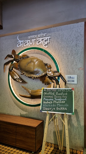We visited this restaurant for Dinner on a week day recently & it was not crowded at all. I liked the decor. It is nice & impressive. You a get a pleasant vibe. Apart from the ambience nothing about this restaurant was nice. They serve various seafood thalis. We ordered a Prawns thali & Surmai thali. The diameter of the thali is about 10-11 inches. The fried prawns & Surmai are coated with rava & rice flour & were very bland with very less salt though fried to perfect crispiness. The taste was just about OK . The prawns gravy lacked the taste. How could the prawns curry in thali be so bland & was sweetish in taste. The Surmai gravy was slightly better in taste compared to the prawns gravy. Basically the seafood is nowhere near the usual Malvani/Kokani taste. Even the sol kadhi lacked the tanginess & punch. The thali was served with only 3 pieces of Vadey. The service staff is absolutely unprofessional. The waiter wanted to know how was the taste of food when we were in the middle of our dinner. He could surely have waited until we finished eating & then asked us the same thing. The person at the bar was playing something on his phone on a loud volume without being bothered about clients eating at the table. We had gone with high expectations but however were totally disappointed. We do not intend to visit this...