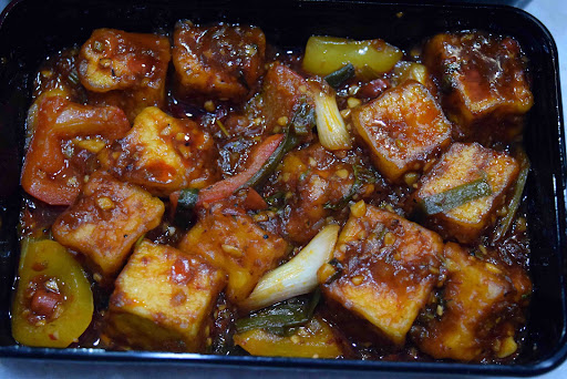 Paneer Kung Pao - It is a spicy stir-fry dish made with the choicest vegetables along with Cottage Cheese, Peanuts, Cashew nuts and Chili Peppers. Here, the Kung Pao is prepared with an exotic and pungent combination of vegetables like capsicums, cubed onions, carrot and broccoli. While ginger and garlic add more flavor to the Kung Pao Vegetables, a garnish of roasted cashews makes it excite beyond words.