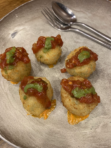 Appetizers: La Veggie Coins – A chef’s special dish which had pan seared green peas patties with chimichurri. Delicious and tasty.