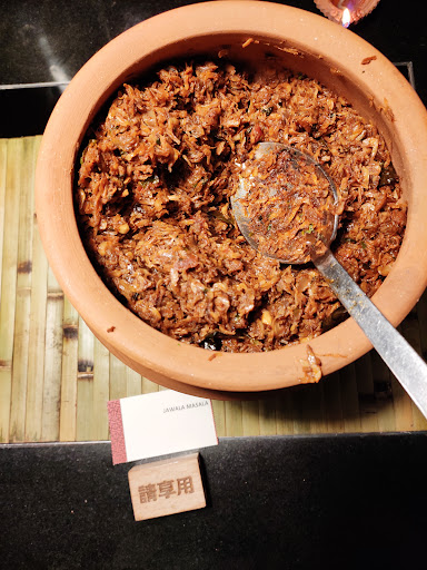 Pitla An authentic recipe which is pretty basic yet tastes amazing served with jowar bhakti and nachni bhakri that can be topped with loni, a cube form of ghee. This counter also had a variety of spices and mixtures to make this dish even more scrumptious like green chilli thecha, red chilli thecha, garlic thecha and dry groundnut thecha.