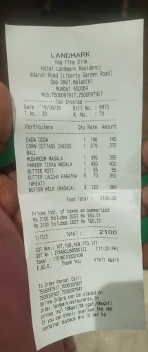 Read moreYesterday I had visited Landmark Veg Fine Dine and the experience with it not so good as far as hygiene is concerned, as far as food is concerned they are taking thier proper charges but as concern to proper hygiene they not taking care of it Yesterday only I had found many small flies around the food while having , so it's become very unhygienic to have that food i would specially recommend it should be taken special care as while having such things if anythings happen to us who is responsible