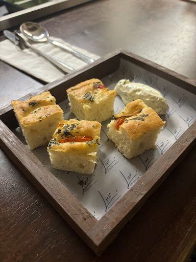Upon arrival, we were warmly greeted by the staff and served a complimentary bread with garlic cream cheese, which was absolutely delicious. It set high expectations for the meal ahead.