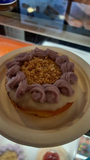 I tried their beat the blue berry cheesecake donut which consisted of blue berry cream cheese, white chocolate and biscuit crumbs. The topping were sweet with a slight umami flavours.