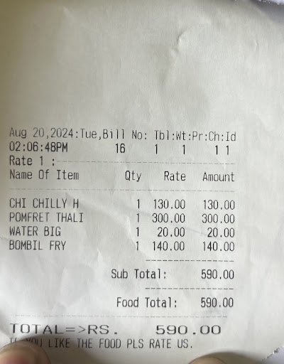 Read moreI'm not sure why everyone awarded this place five stars. I made a mistake by coming to this restaurant, which cost me money. The food quality was the worst, the amount was the worse, and the environment was quite terrible. Sol kadi was so spicy that it burned our throats after just one taste. When I informed the manager he said that's how we make it and everyone liked it. THE MANAGER WAS LITERALLY SMOKING CIGARETTE IN THE KITCHEN AREA. I took a video of that One customer directly went inside the kitchen after placing the order. I have been to many restaurants but this had sol kadi this spicy with no taste, Surman had less white meat and more black meat and in bombil there was not meat.