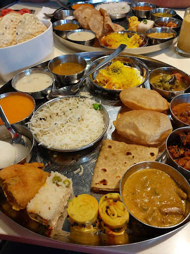 Read moreWhat it includes - 3 starters - WHITE DHOKLA KHANDVI, STUFFED MIRCH PAKODA. RASGULLA and AAMRAS 4 types of SABZI. (main course) Dahi Kachori CHAAT. Meethi DAL, and GUJRATI KADHI. PURI and Ghee ROTLA. Steam RICE and Matar PULAV JALJIRA Drink, and ofcourse CHAAS! Papad and Salad ! . OUR REVIEW - The experience was surreal, with the taste reminding the roots of Gujarat. The flavours were PURELY TRADITIONAL - ekdum Maa k haath wala swaad! . Dhokla was super fluffy, Khandvi was totally melt in mouth and the stuffed pakoda was crisp, and filled with masalas. . The chaat was totally street style, and mouthwatering. . The sabzis were sweet, tangy, spicy and a mixture of flavours. . The Dal was sweet, and the kadhi was spicy, and thick. . The rice was long grain basmati, and matar pulav was relishing. . Puris were hotly served, and the Rotla was loaded with ghee! . JALJIRA Drink was a total refreshment, and the Chaas total relief in this summer! . The Rasgulla ( literally craving more rn) were so spongy, exactly how it should be! Aamras is an...