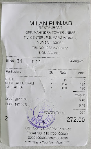 ย ย ย Read moreI ordered veg thali which was supposed to be Rs. 125-130. But it end up costing of Rs 272/- catch is here when I was about to finish my lunch I started rice but dal portion served me in small bowl which was sufficient for the portion of rice served. So I asked them a bowl of extra dal. He said you have to order additional which end up me additional Rs 120/- which just because of rude behaviour of staff during serve. I would not recommend this place as a good option just because of service of staff is not...