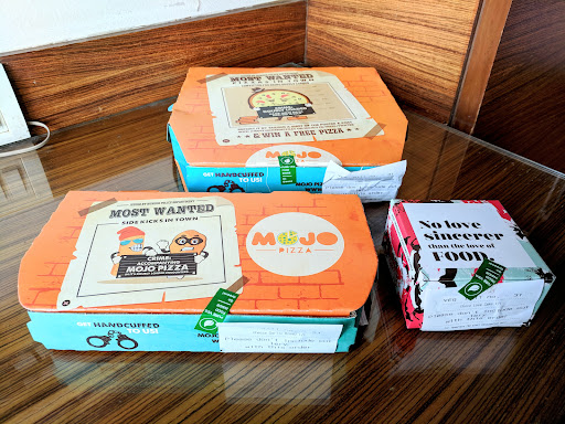 Read moreMOJO PIZZA REVIEW. I often order pizza from this place their pizzas are just delicious to have. this time i ordered farm fresh pizza and bbq chicken pizza. delivery was on time. packaging was perfect. both pizzas were full of cheese.