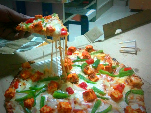 Mojo pizza doubly loaded is serving a large quantity of pizza . A good competition in the market for pizzas. The size of the pizza is large . And there is a soft bread which taste good . Me and my friend were looking for some good pizza restaurants other than dominos and Pizza Hut . Then I found this mojo pizza . I had 3 type of pizza there . And it was really nice. It was quiet better than the regular option (dominos ). The service is also good . And the price factor in all the pizzas is average and it is absolutely worth it .