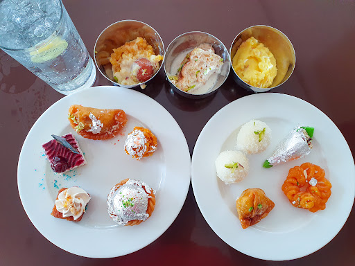 Read moreDropped in here for lunch on the weekend, to avail their Buffet on Buffet scheme. I was impressed by the vast spread on offer, from starters to chaat to desserts there was a plethora of options. Before beginning our lunch, we went round all the counters to figure out which foods to attack first, since it was not possible to sample all of it we had to prioritise. The starters were brought at the table (except for paani puri which had it's own service counter), and while the nonveg ones were quite good, the surprise package was the chaat menu. Both the bhel puri and the sev puri were excellent, as good as, if not better than, any chaat I've had in any restaurant (though street chaat still remains unmatched, I feel). The veg options were quite good too, especially the pattice/cutlet. I ordered a cocktail (charged separately), Shade Aide, which was Bacardi, Malibu, cranberry and orange put together. It turned out be a little too fruity for my liking, as I barely felt any of the rum in it. With the first round of starters over, our pizza arrived. Thin crusted, plenty of sauce and a little bit of meat on it, we liked it enough to repeat it, along with the nonveg starters (which included chicken and basa) as well as the chaat items. We then turned our attention to the paani puri counter, and this was the only chaat item which was disappointing. The water was chilled, which was fine by me, but there was no real taste to it, and neither to the ragda. My next drink was The Last One, a heady mix of Absolut, Bacardi, jagermeister, Red Bull, cointreau, gin and tequila, and I really enjoyed it. Upon my request it was made strong, and gave a light buzz as well, I highly recommend this one. Now we tried to squeeze in some of the mains, while reserving some space in our tummies for desserts. From noodles to meat to fish to biryani, we nibbled at all of them. Most of them were quite good, but the chicken biryani and the peri peri fish were a letdown. Overall my pick would be the Chicken Stroganoff and Roast Chicken. The latter was simply fantastic, an absolute must have. At last, it was time for the final attraction, the desserts. From mango barfi to strawberry pastry to Swiss roll, they were all worth having, though of course just one round was never going to be enough. All this was followed by ice creams, and I found chocolate to be the best of them. With that done, we left with tummies stuffed with food and hearts full of satisfaction. To sum up then, Momos Cafe is a place I recommend highly, there's something for everyone. While there are many less expensive buffets around, this one provides a big bang for your buck with its sheer variety, most of which is lip smacking. And since we availed the Buffet on Buffet scheme, it was tremendous...
