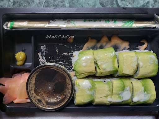 🍣Green House Avocado Cucumber Cream Cheese Sushi: MUST HAVE 8 pieces of finely rolled sushis served with Soy sauce, wasabi and pickled ginger.
