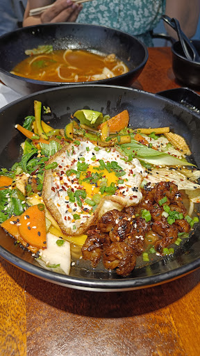 Food: The food, while not terrible, certainly didn't live up to expectations. We started with the Chicken Crispy Open Bao and Buff Gyoza Momos. Both were okay, but nothing particularly memorable. For our mains, we ordered the Ramen Bowl, Pork Wok, and Green Thai Curry Rice. Again, the dishes were generally acceptable but lacked the flavor and finesse one expects from a restaurant of this supposed caliber. A significant letdown was the Poke, which was not served as a main dish as advertised on the menu. Instead, it arrived as a side dish, and to add insult to injury, it consisted almost entirely of pieces of pure fat. This was not only unappetizing but also misrepresented the dish entirely..