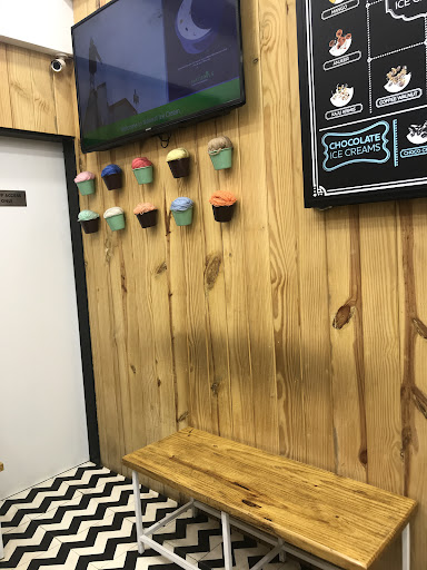Read moreA hard to miss place on Gulmohar road, an outlet which has been here for quite a long time. Renovated a couple of years ago and now has sheltered outside seating area for the rainy season. Here one can find ice creams n shakes in the flavors of the season like strawberry, mango, sitafal, etc. And also lot of all season flavors like coffee walnut, roasted almond, tender coconut, etc. Ice cream lovers have 3 choice to choose in the base i.e., cup, cone Or waffle cone, and 3 sizes in cups small, medium, large. One can choose to have a single scoop or double scoop ice cream. You also have an option of choosing different flavors in each of the double scoop. They also have shakes in the menu and it's available in all flavors present. However, the shake consistency is quite thin. I tried the tender coconut shake which was more like ice cream blended with some milk. There are chairs outside and inside there's an L shaped bench attached to the wall which serves as a seating area. They are open till midnight and more at times. All in all a great place to visit with frens and family even...