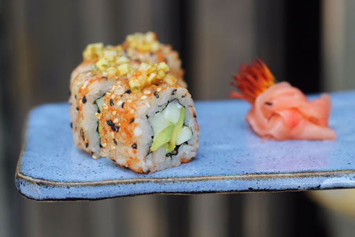 Sushi Rolled avocado, cucumber, cream cheese wit raw mango togarashi salsa . Let me tell you the sushi is outstanding. This is a great combination of ingredients and It always goes well together. The crunchiness of the cucumber with the creamy texture of cream cheese combined with avacado and the soft rice rolled sushi is yum.