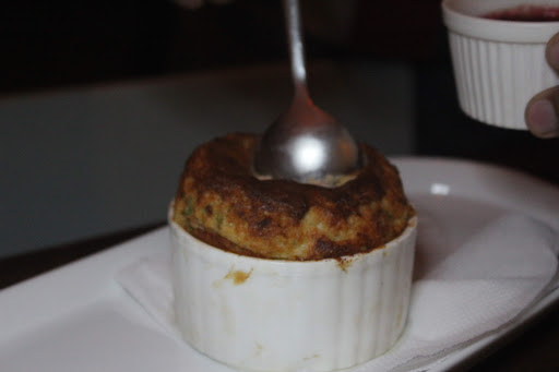 Soufflé - Savoury, if you are a vegetarian must try the Asparagus and Beet (sauce) baked at the correct temperature with perfect density. A bit of asparagus (diced) along with herbs. This was served with Beet sauce. One needs to cut the soufflé and pour the beet sauce. Yummy. This is a tricky dish but made to perfection (star dish of the day)