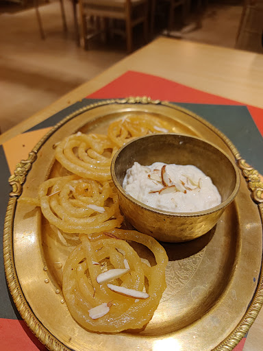 6)jalebi with rabdi Every dinner is incomplete without dessert...so to give an extra texture we ordered something in desi style...jalebi with rabdinis a very famous combination and here it was just on top level.. The quality of rabdi and with that crunchy jalebi it was a dessert that took all the credits...