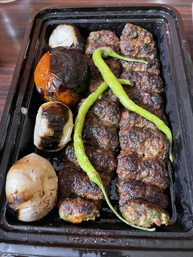 Each kabab was different.. and very tasty .. they’re served with whole grilled tomatoes and onions. And yogurt dip.