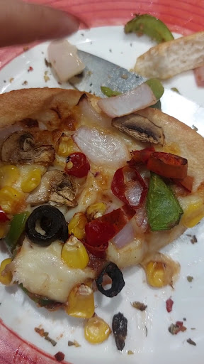 Staff: are they forced to work here? I felt they were done with their day at 7:15 pm in evening. I do not want to pin point but their behaviour was 'dekh lo aap kya karna hai..hum kuchh nai karenge' Food: absolute disappointment. Their walls are adorned with quirky wall arts...which claim basic things...but nope they are not even close to deliver the mere basics. Added reviews based on those claims that were put up so awesomely on their own walls. -only spots of pizza sauce :( -very less very very less toppings :( -most toppings were placed on top and were a part of cheese added. So they were separate and rolled off. Means... we probably reused a plain cheese pizza and added a few veggies to just get done with order. Yes I will judge. Its the food I am consuming and paying for. -the crust was half baked and what we were served was merely heated up. -order was basic. 2 personal sized veg pizzas. What was served was even more basic....loaf. -we ordered basic drink..fresh lime in water. Denied. We dont have. We payed with cash and the change was denied. When we denied with same 'force' that no even we dont have. We will stay here its fine. Please arrange. Take your time. None of them were seen going out to arrange and they brought the change. Lies? Why? After such bad pizzas? the wooden stands for oregano chilly flakes were empty and dirty. There were NO tissues. Dishes and tables were sticky and dirty. The floor was not clean. The mop cloth they used to clean the table...