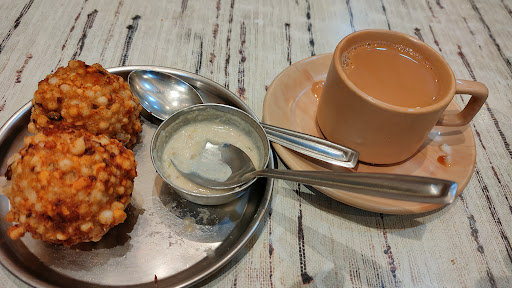 Start with the Misal because it is served the fastest; order a Sabudana Wada or Thalipith / Kothimbir Wadi for later. The Sabudana Wada is legendary here. Please also try the Mutter Pattice [Green Peas] which is served with very tangy tamarind chutney. If you don't mind consuming something bit oilier, please order the Veg Samosa [made with Green Peas, Cauliflower, French Beans and a spicy masala] All the above items are served with Groundnut chutney which again is a speciality of this restaurant. It is coarsely ground chutney made with Raw Groundnuts with a sprinkling of fresh coriander.