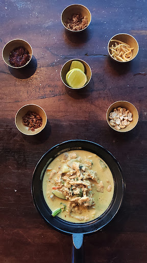 🍽️ Khaoo Suey: Khoo Suey is a one-pot meal with noodles and veggies cooked in spicy coconut milk nd garnished with array of condiments (peanuts, fried garlic, onions etc etc etc). This was our 1st time trying Khoo suey and weren't disappointed! 💛