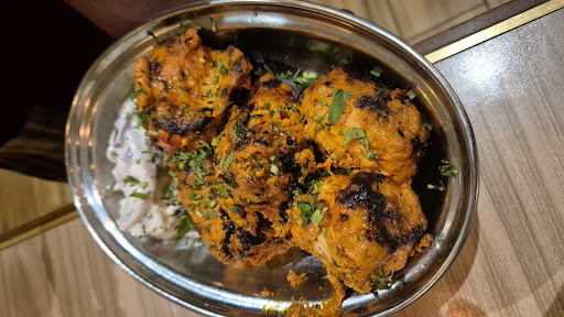 We started with a few mocktails like Blue Lagoon INR 210, Mint Mojito INR 350, Lemon Iced Tea INR 160. The drinks were perfect and refreshing, and the taste was great. For those who aren't fond of spicy cuisine, the Chicken Jehangir Kabab priced at INR 375 makes for a perfect starter. The chicken chunks were marinated in cream and spices before being grilled to perfection, resulting in tender and juicy pieces. Various sauces were available on the table for you to customize the taste to your liking.