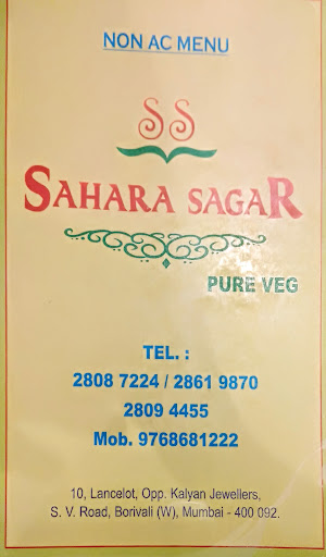 Read moreThis place is located in borivali west nearby railway station. This restaurant is basically famous for its south indian cuisine like having many types of dosa's and idli. They also serves great punjabi dishes which are just mouth watering. Place is pocket friendly and good place for small parties. Staff members are also good. Few must try dishes:- Pav bhaji Tawa masala Cheese palak dosa Masala pav IDLI STICK this are my all time favourites out there.... MUST VISIT!!! The pav bhaji at Sahara Sagar is so tasty. The bhaji is an example of perfect proportion of various spices and you must top it with onions and coriander! And the soft pav covered with melted butter is just irresistible! Nothing can beat the pav bhaji of...