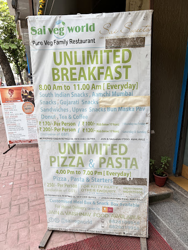 Sai Veg World boasts an extensive menu that caters to a wide array of palates. From traditional South Indian dishes like Mysore Sada Dosa to North Indian favorites such as Paneer Lazeez, the variety is impressive. The restaurant also offers Mumbai street food staples, Gujarati dishes, and even Chinese combos, ensuring that every guest finds something to their liking. citeturn0search3