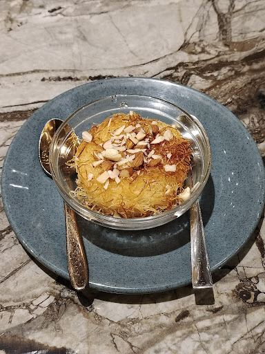 Read moreThe ambience (5/5) is really good here. The service was good and prompt, may be because I visited this place on a weekday. I had Chicken cheesy kebabs - the chicken supreme pieces (6 big pieces) were tender and juicy (5/5) Masala Papad - this was regular quarter plate size papad with not so overloaded toppings which was actually good because heavy toppings makes it difficult to eat and makes the papad soggy. (4/5) Virgin Mojito - again, a regular glass of Virgin Mojito, not too artificially sweet. (4/5) Kunafa - this was served in a small bowl, the vermicelli was not crisp (which I expected it to be) however the inside was filled with good amount of soft cream cheese. It was topped with just perfect amount of saffron sugar syrup (not too sweet) and some diced badam and kaju (dry fruits were not really...