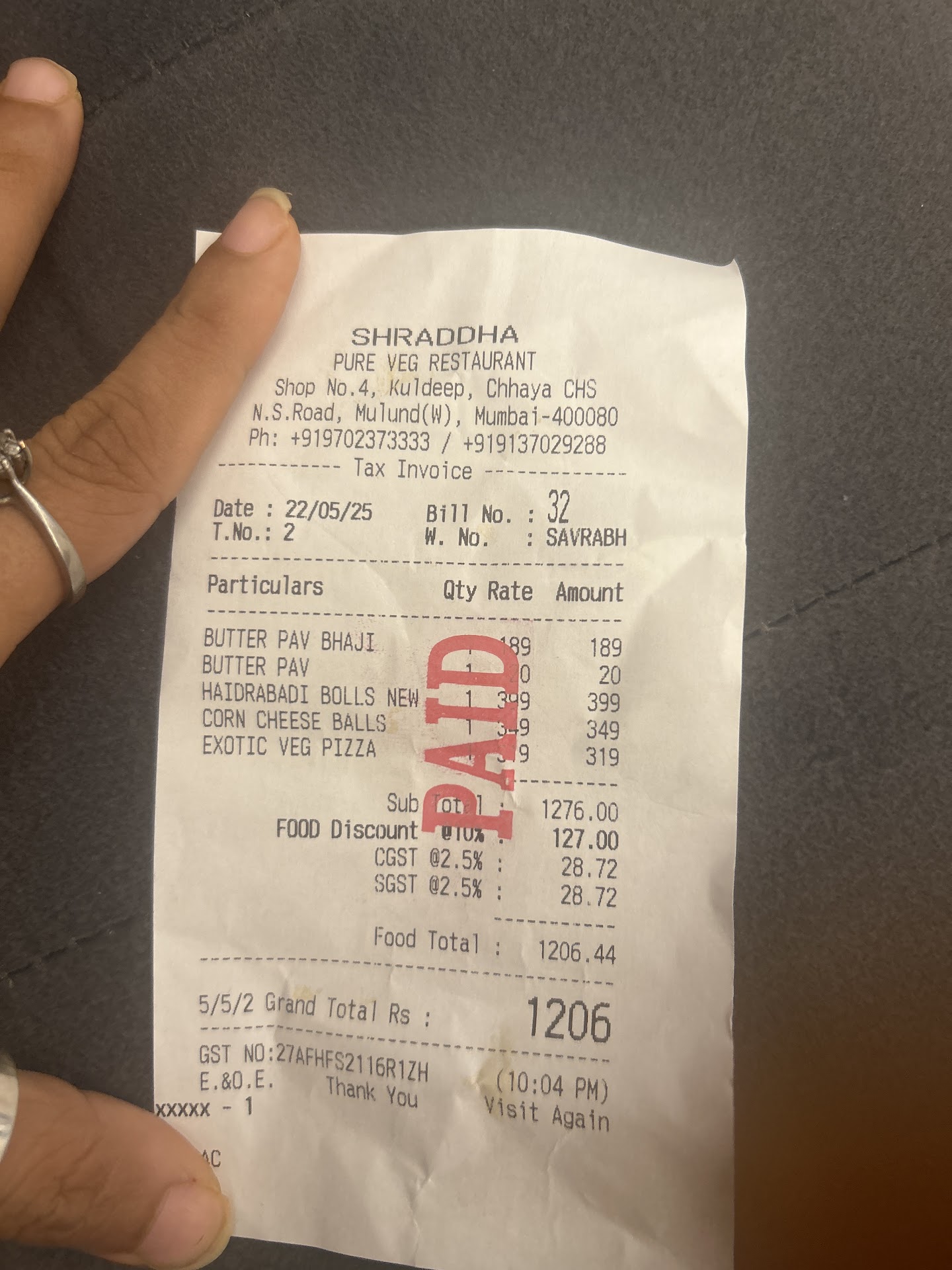 We ended up paying ₹1200 and left feeling like we hadn’t eaten anything worthwhile. Right from the start, things went wrong. We wanted to order a variety of starters of our choice, but the waiter kept insisting—despite us saying no twice—that we try the Hyderabadi Balls, claiming they had paneer inside. Trusting his word, we agreed, only to receive the dish 30 minutes later—without a single piece of paneer. We hadn’t even ordered cheese balls, yet that’s what we were served.