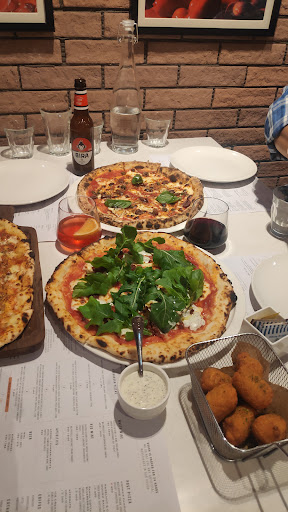 The menu had a great selection of classic and unique pizza options, all made with high-quality ingredients. I decided to try pizza no 3 which consists of Tomato sauce, fior di latte mozzarella, thinly sliced garlic, pitted Greek kalamata olives, capers, oregano, fresh basil and evoo and pizza no 9 which included Tomato sauce, fior di latte mozzarella, spicy sundried tomato paste, sumac garlic yogurt, fresh arugula and evoo; both of which were absolutely delicious. The crust was perfectly crispy and the toppings were fresh and full of flavor. Also tried mozzarella and jalepeno croquettes along with focaccia AI rosmarino. Enjoyed our evening with some beverages at this happening place.