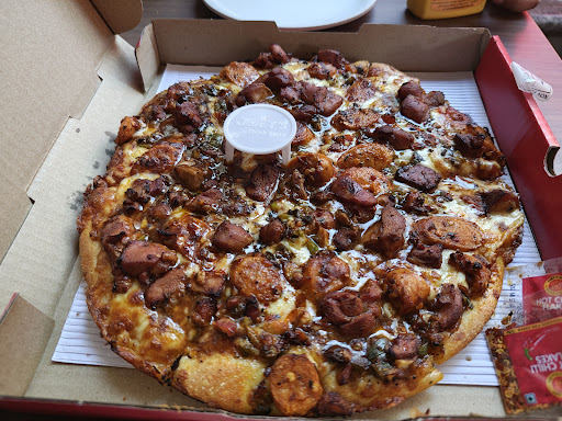 Read moreThe toppings on the pizza was really abundant. However, the 5 pepper chicken pizza mentioned spicy sausage but it was normal sausage with raw roasted chilli flakes and too much of it. The pizza was too spicy to be consumed and my entire family of 5 got looses motions after eating it execpt 1 who did not eat that particular pizza. Recommend never...