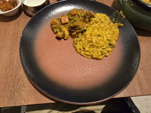 Subz Tehri. Was satisfying and soul soothing. Warm masala rice with some chilled boondi Raita just made it all so perfect. The Tehri was mildly spiced and the flavour of the birasta was excellent.