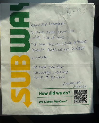 But still I left clear instructions to put more sauces and make it juicy and tasty.. and whoa what did I receive... very very dry subs..hardly any sauce and very less veggies.. and one will feel like a beggar after paying 460 Rs... tasteless dry pieces of bread...and the phone number on Zomato of that outlet is out of service and this is not for the first time...it happens All the time.. please refrain from ordering subway and especially the Prabhadevi branch..these guys sell off sauces to make extra income and cheat customers and no one is keeping a tab on them..they ruined my lunch...cheaters this Prabhadevi branch of SUBWAY is...Now that I am checking on other reviews...there are complains pertaining to this branch in terms of quantity and quality... please refrain from using PRABHADEVI...