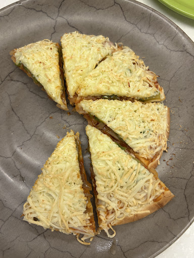 CHEESE PIZZA - A super cheesy pizza, which I am sure you will love if you are a fond of cheese. The burnt cheese on top of pizza tastes extremely good.
