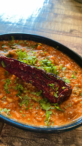 Chicken in basil thai sauce- Classic Thai dish made with fresh chicken thighs and creamy sauce. Mild taste of coconut milk enhancing the flavour. Fresh basil leaves topped on juicy and tender chicken. Few pieces of chilly providing optimum spicyness. Well made!