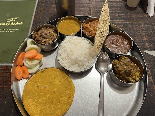 I was visiting Mumbai. I was in the mood for some good pure vegetarian food. There are many vegetarian food joints in Malad but then none came up to the standard that i was looking for. I just happened to come across Swadshakti when doing a google search and this place looked interesting. Its located in a unpretentious corner on SV Road but when i entered the premises there was a different vibe about the place. Its actually an Ayurveda Centre and noticed many foreigners .They come and stay there to undergo Ayurveda treatment along with the local populace who visit for Day use. The Menu looked so interesting and different. I ordered their Inhouse Thali and in keeping with their idea of a healthy meal the quantity was apt. It was so delicious and there was the essence of pure vegetarianism in it. . I would also like to mention if i am not mistaken the Manager Harish Desai who was such a courteous gentlemen and his character reflected in the way he was treating the elderly who had come for treatment. Definitely a must go if you are in the mood for...