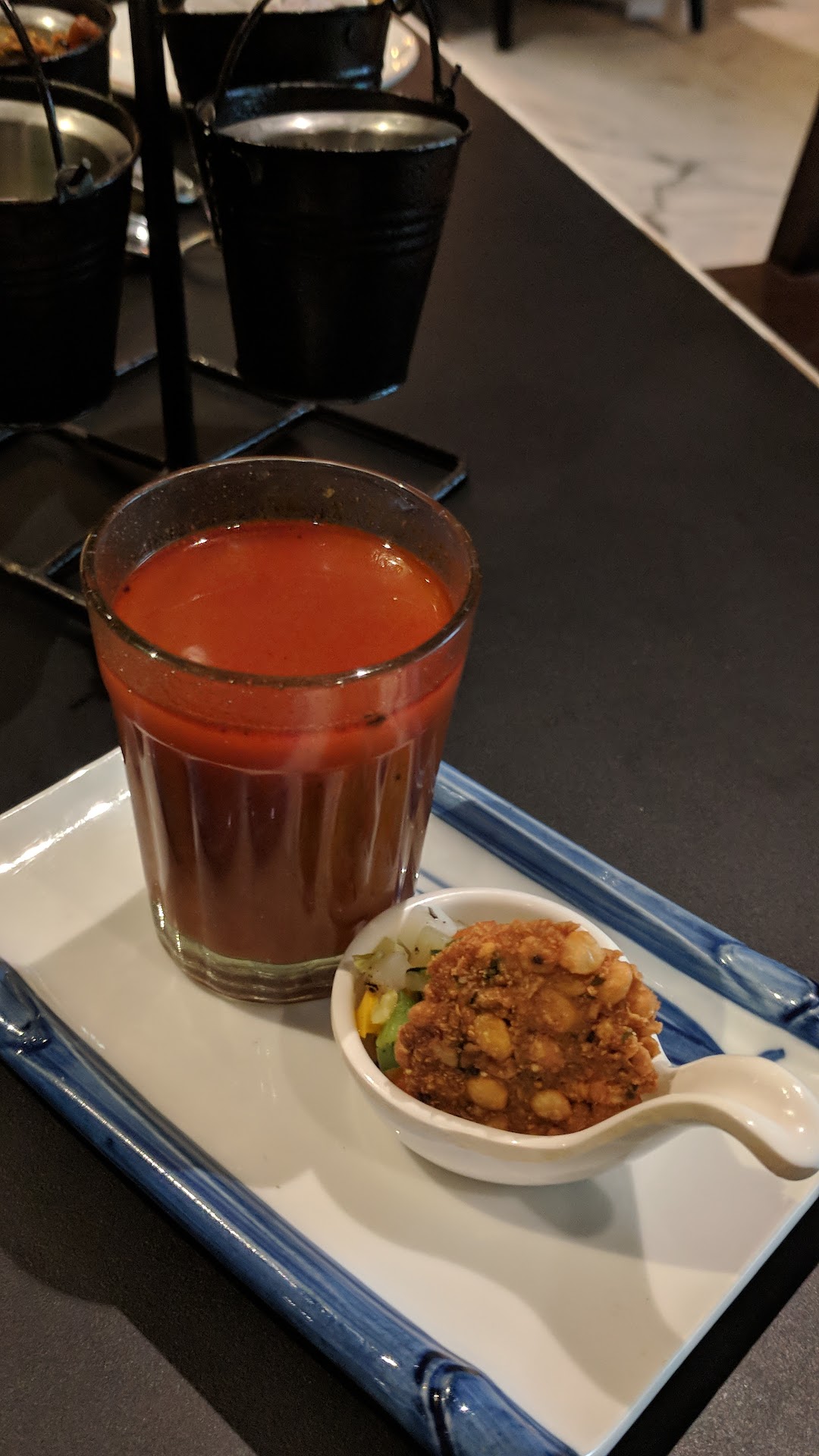 presented in a very subtle yet eye catching manner. With a daal vada crisp and fresh bell pepers blanched seasoned with salt and pepper was like a warm welcome to this place. Rassam was filled with spices, aromatics.