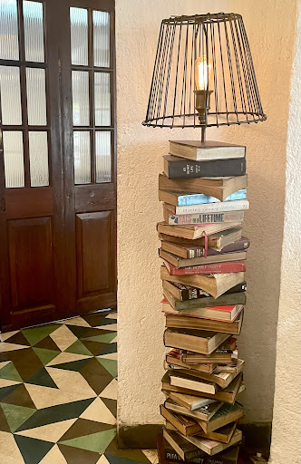 Which brings me to the wall in the restaurant that is covered with books. Yes! Actual books, stappled to the wall, all yellow with the passage of time and covered with words and now I am sure infused with the aroma from the dining area. There is a quirky book lamp and cozy corners with books to read. Though they are changing their décor in March-April. Perhaps will go back in May after their renovation.