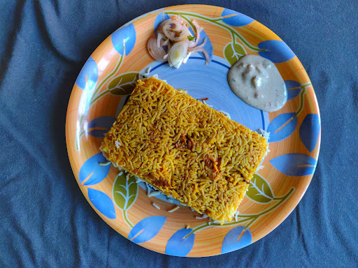 Chicken Tikka Biryani: Delicious Chicken Tikka Biryani loaded with spicy marinated chicken tikkas, onions and flavorful saffron rice. Very happy to see Biryani was not at oily and hot. Perfect blend of long grain rice, spices and chicken pieces. Good to go to try this one.