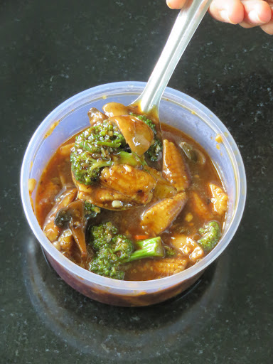 Jasmine fried rice, I would say rice with absolutely delightful aroma and taste. It was loaded with fine chopped veggies, good quantity of feep fried garlic. I definitely recommend this rice. We paired this with mushroom and baby corn in black bean sauce, which was having perfect consistency, not really spicy and with fresh mushrooms and babycorn.