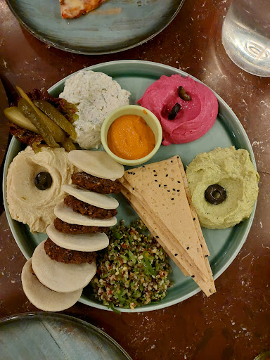 I chose this restaurant based on the reviews about jain food being excellent. However, it wasn't true. Not completely disappointed bcoz the tandoori dish was a savior for the evening. Their mezze platter with hummus and falafel in jain was tasteless. I have had hummus and falafel in jain version at many places and this was not good. Very bland. No olive oil being drizzled on the hummus. Pita breads were dry and not even toasted a little. And lavash bread looked stale and not crispy.