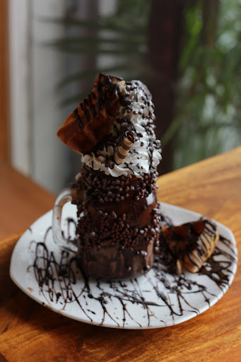 â˘Chocolate Mud Pot: This was the highlight of our visit. This mighty freak shake was so well presented with each element from the tiny Choco balls on the outer side of the jar to the detailing of the cream and chocolate sauce, just Lovely đ The waffle was perfectly made which again won my heart. All in all, the perfect freak shake to order. But beware of it Gigantic-ness both ,look wise and quantity wise as well.