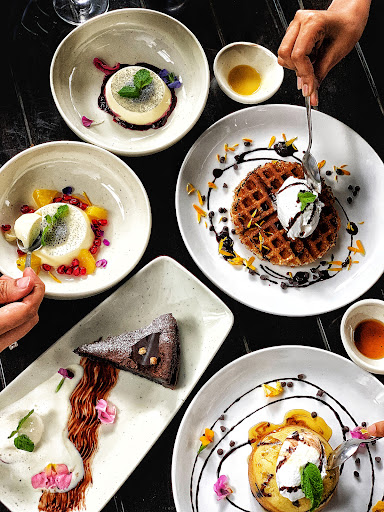 Stepping into this place feels like stepping into a greyscale glossy newspaper. They have an extremely powerful monochromatic theme. Everything exudes confidence here, right from their marble topped tables to their strong-backed buffalo printed sofas. With the media nowadays grabbing eyeballs with attention-seeking negativity, this place stands apart with its rows and rows of happily framed newspaper cut-outs hanging from the ceiling and their huge intriguing cage of well wishes. Their food looks master chef pretty. Presentation and class are their primary forte. In the drinks, we had the Moon Maiden. It had a perfect blend of cranberry, ale and the tanginess of lime. You know a drink is good when it has a crackle of an aftertaste to it. This one struck the right chords with the cranberry juice being neither too sweet, nor too sour. All the food here had tiny flavours assimilating together to produce a distinct taste. We also had Midas Touch. It had watermelon, cucumber and anise. This small bomb of a drink was extremely rejuvenating and had a fresh flavour to it. With the watermelon making it a cool summer drink, the cucumber and anise make an extremely hydrating, cold addition. The cucumber and mint were distinct with watermelon complementing their flavour. Coming to the Yellow Mellow, it had a peculiar flavour of pineapple and banana, with the pineapple being the protagonist. It was tangy, yet sweet drink. This was by far one of the most unique combinations we have ever had. The Roast Chicken Salad here had a very smooth taste. They had a base of olive oil and butter blending all the ingredients like soft and spiced julienne chicken, olives, kale leaves, spinach and finely chopped, soft, buttery tomato together. This assortment comes in a thick wooden bowl. The Champagne Mushroom Fricassee had wild mushroom sautéed with champagne. It had a slight, weak and tender cover holding soft vinegered parmesan-cheesy mushrooms within. There was a ketchup sauce splattered on the side with a decor of basil and cilantro leaves. Their tomato sauce felt homemade with a hint of chilly and a blast of flavour. Beer Battered Prawns and Calamari, this had a sider of mayonnaise with super-fine onion chops and coriander in it. There was a crunchy, crispy layer on top, once you get past this, there are moist prawns within. This dish brought a strong mouth-watering aroma of fresh prawns and beer with it. It came in a wooden basket on a lace tissue. The Cottage Cheese Steak which formed an essential part of the food we ate was cooked absolutely brilliantly. The fork just sunk into the cottage cheese making it taste like heaven. The fondue served alongside was creamy cheesy and thick at the same time. The ratatouille served alongside was just the best one we ever had. The Char Cottage Cheese Sandwich also was made brilliantly. It basically had the same fillings as the steak but the bread made it deeper and better and also more succulent. Their presentation skills blew our minds off. We had the Slow Roast Pork with Pineapple and Bird Eye Chili Glaze in Brioche Bread. The bread was thick and slightly toasted. The pork was plain magic. It was sweetened to perfection with the perfect glaze. It was juicy and utterly succulent. This came with fries and a special salad. The salad had really fresh vegetables and was a delight. We also had the Flourless Dark Chocolate Mud Cake. This was a dream. Probably the best dessert we have ever had. The chocolate was rich and insanely soft. It had powdered sugar shower and a slim burnt apple slice on the side with vanilla ice cream topped with a cute cilantro leaf. Mascarpone Almond Crumble was another amazement. This had the softest cream cheese scoops sprinkled with almond bits sided with glazed oranges. The oranges just slid out of their peel. They serve fine food at its best. All in all, this place blew our minds away. Their food, their ambience, their aura is just a class apart. Ambience: 5/5 Taste Quotient:...