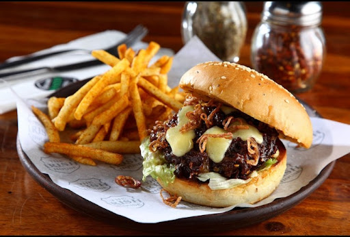 Beetroot and goat cheese sliders Charcoal buns packed with Beetroot and Goat Cheese patty, served with fries 🍟 Well balanced... Tasted.. Good.. Neat Presentation..