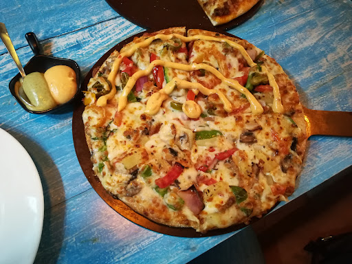 Laal maas- this pizza was prepared using traditional rajhasthani spices and tasted very similar to the meat preparations of the same name that you get in the states villages. The fundamental topping to this pizza is minced lamb marinated with hot spices. The pizza might actually be a bit hot for some people (but u can always ask for some dips or relishes to cool down the heat). Personal favorite. Must try. 5\5